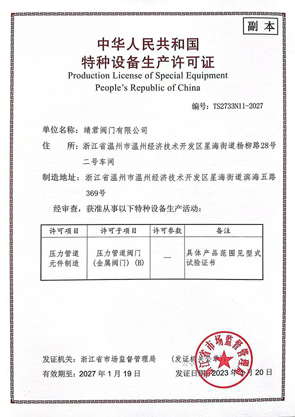 靖君閥門有限公司是專業(yè)生產(chǎn)閥門系列的企業(yè),座落于溫州經(jīng)濟(jì)技術(shù)開發(fā)區(qū)濱海園區(qū),交通便利。本公司是一家集設(shè)計(jì)、開發(fā)、生產(chǎn)于一體的閥門企業(yè),主要產(chǎn)品有各類高平臺(tái)球閥、氣動(dòng)閥門、電動(dòng)閥門、螺紋球閥、法蘭球閥、閘閥、截止閥、止回閥、一片式,兩片式,三片式球閥及絲扣閥門,過濾器等系列產(chǎn)品產(chǎn)品可根據(jù)不同要求分別采用GB、API、ANSI、BS標(biāo)準(zhǔn)進(jìn)行設(shè)計(jì)、生產(chǎn)和驗(yàn)收。可根據(jù)使用介質(zhì)、溫度不同及材料分別采用碳鋼、不銹鋼、低溫鋼、合金鋼、耐高溫、超高溫特殊鋼等;傳動(dòng)方式可分別選用手動(dòng)、 蝸輪傳動(dòng)、氣動(dòng)、液動(dòng)、電動(dòng)等。